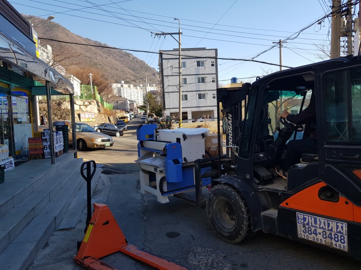 내리막에 입구도 좁아 조금 힘들긴 했지만 지게차 기사님의 좋은 솜씨 덕분에